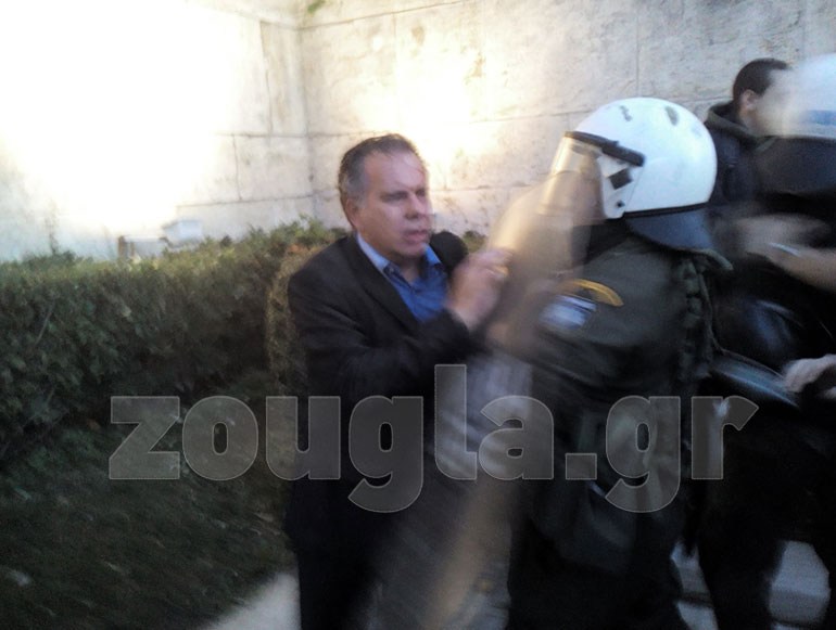 Αξίζει να σημειωθεί ότι χρειάστηκε η επέμβαση δύο διμοιριών των ΜΑΤ για να γλυτώσουν τον βουλευτή.