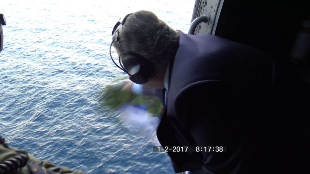 Ο υπουργός Εθνικής Άμυνας Πάνος Καμμένος, πέταξε σήμερα Τετάρτη με ελικόπτερο στα Ίμια για να τιμήσει τη μνήμη των τριών Ελλήνων αξιωματικών του ΠΝ που έχασαν τη ζωή τους τη νύχτα της Κρίσης των Ιμίων το 1996 με ένα στεφάνι στη θάλασσα.