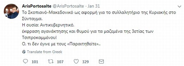 Δείτε πόσο ξεκάθαρα το έγραψε ο Άρης Πορτοσάλτε στο Twitter. Ούτε τα προσχήματα: