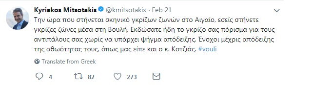 Το πιο πιο αχαρακτήριστο από όλα είναι ότι σχετικό tweet, περί του τεκμηρίου αθωότητας, είχε κάνει και ο ίδιος ο κ. Μητσοτάκης. Αυτό κι εάν λέγεται μπούμερανγκ, για να μην το πούμε αλλιώς…
