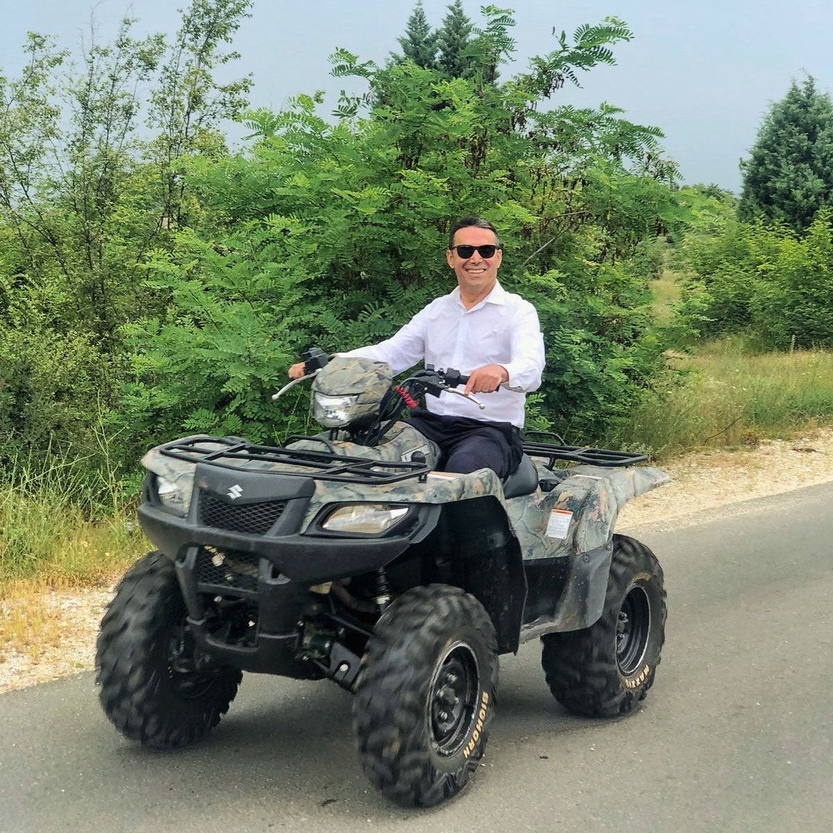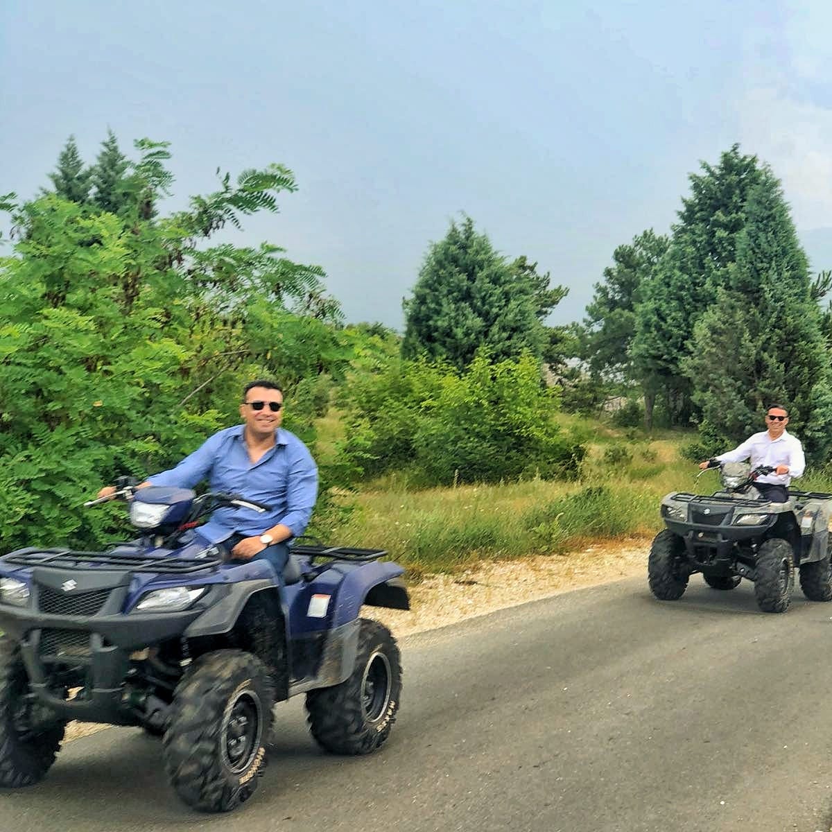 Ανήρτησε επίσης φωτογραφίες όπου μαζί με τον κ. Ντιμιτρόφ διασκεδάζουν τρέχοντας με «γουρούνες» σε χωματόδρομο.