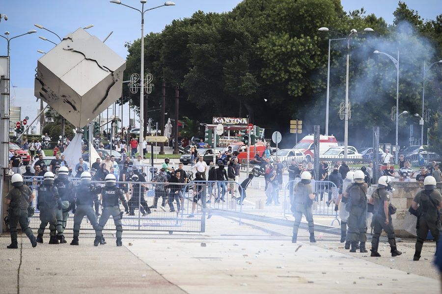 Επεισόδια σημειώθηκαν νωρίτερα στο περιθώριο εκδήλωσης που διοργάνωσε ο ΣΥΡΙΖΑ, στο εκθεσιακό κέντρο της Διεθνούς Έκθεσης Θεσσαλονίκης , με θέμα τα οφέλη της συμφωνίας για το ονοματολογικό.