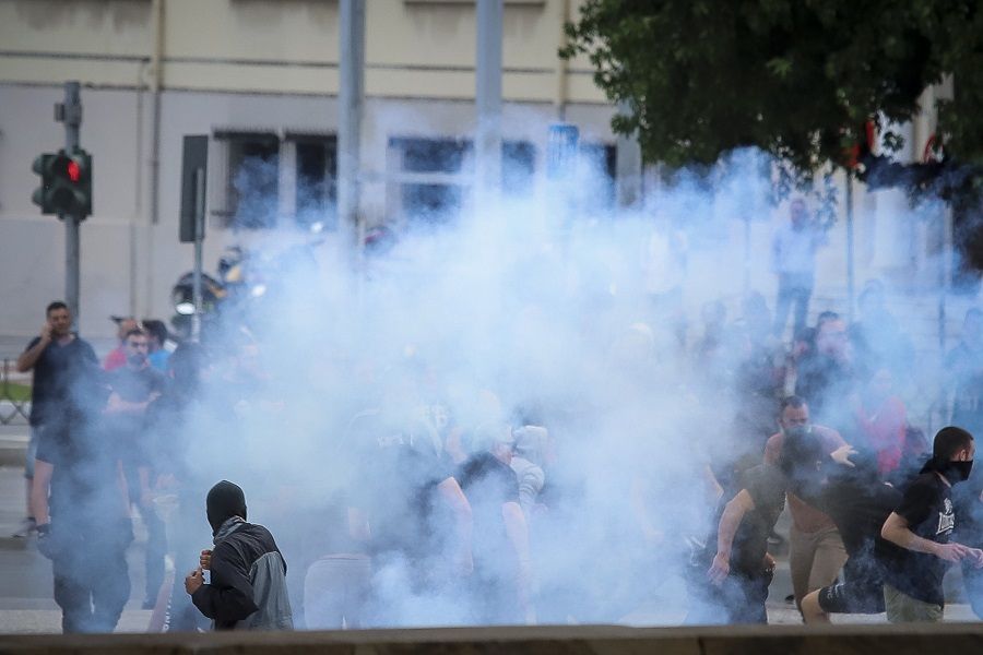 Λίγο μετά τις 9.30 το βράδυ η κατάσταση εκτονώθηκε, ενώ – όπως έγινε γνωστό από την αστυνομία – έγιναν τέσσερις προσαγωγές.