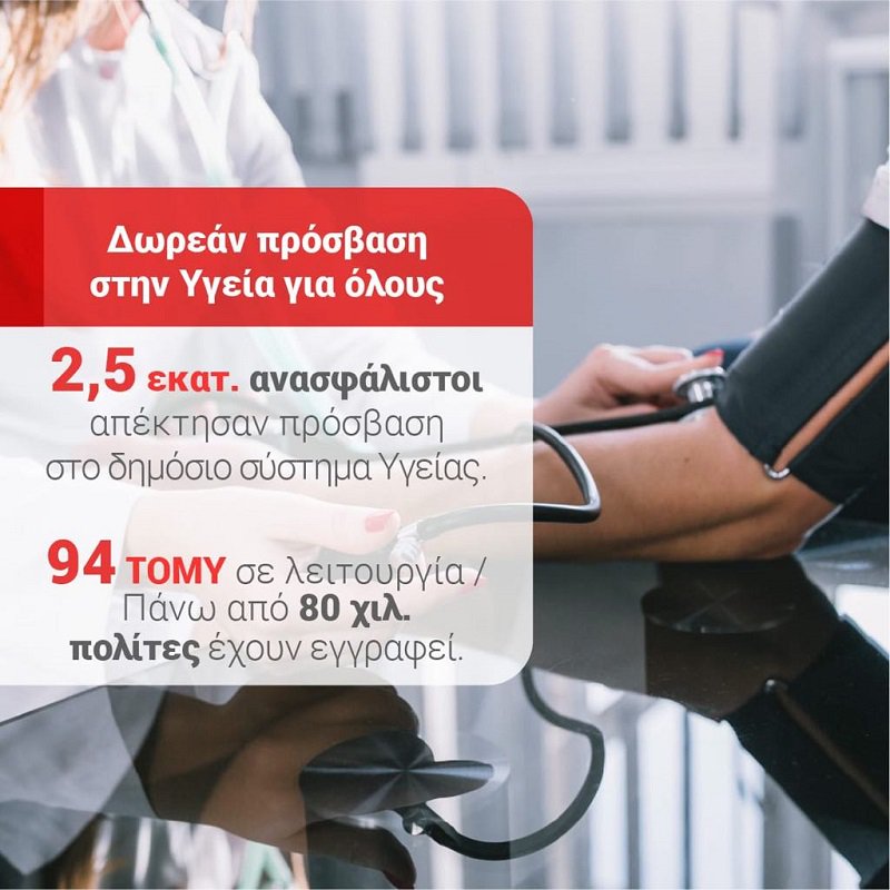 2,5 εκατ. ανασφάλιστοι απέκτησαν πρόσβαση στο Δημόσιο Σύστημα Υγείας.