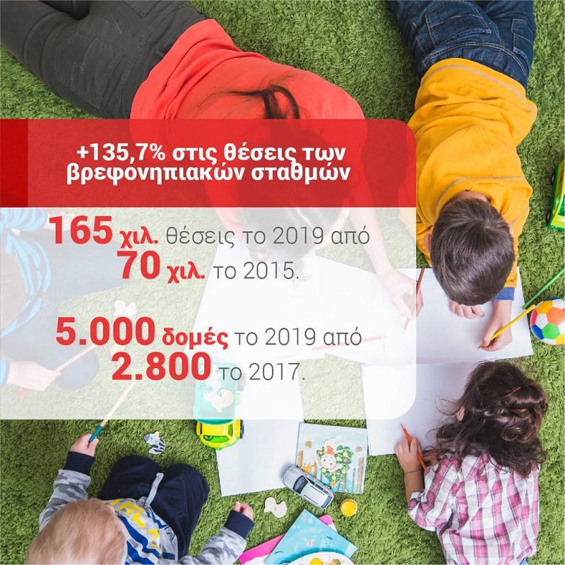 165 χιλ. θέσεις το 2019 από 70 χιλ. το 2015. 5.000 δομές το 2019 από 2.800 το 2017.