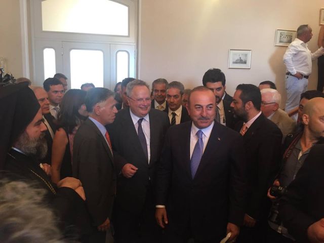 Εκεί είχε κατ’ ιδίαν συνάντηση με τον Τούρκο ομόλογό του, Μεβλούτ Τσαβούσογλου, ο οποίος επίσης παρέστη στην τελετή.