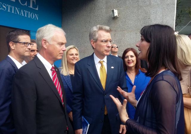 Το περίπτερο του ΕΟΤ επισκέφθηκε επίσης ο πρέσβης ΗΠΑ στην Ελλάδα Τζέφρι Πάιατ και ο Γερουσιαστής Ρος Τζόνσον.