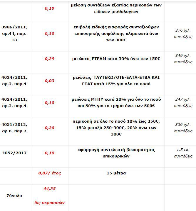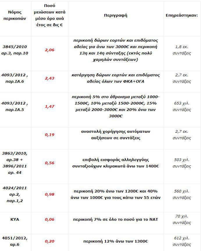 »Συμπεριλαμβάνει επίσης τις αλλαγές στα κατώτατα όρια σύνταξης του τέως ΙΚΑ που έγιναν σε εφαρμογή νόμων του 2010 και του 2012.