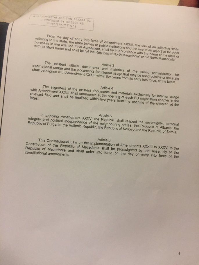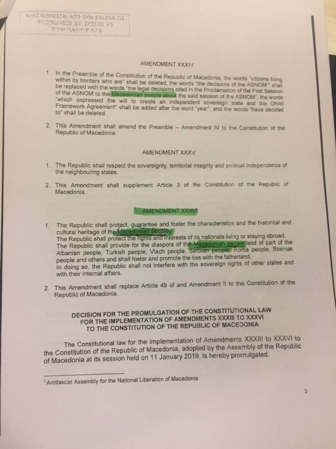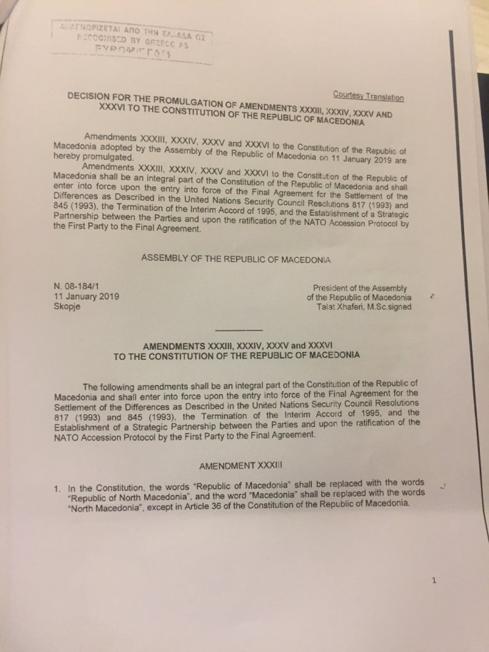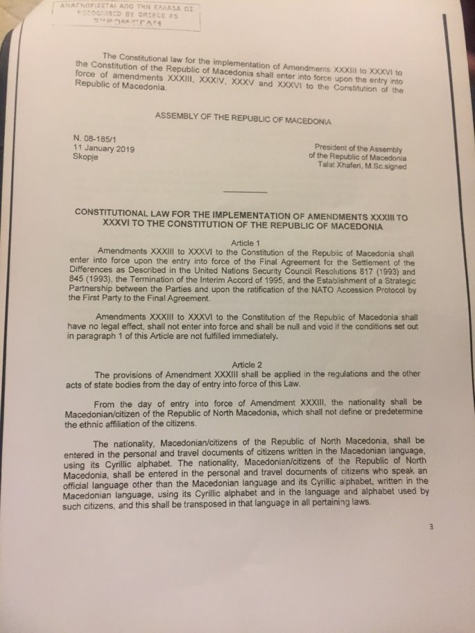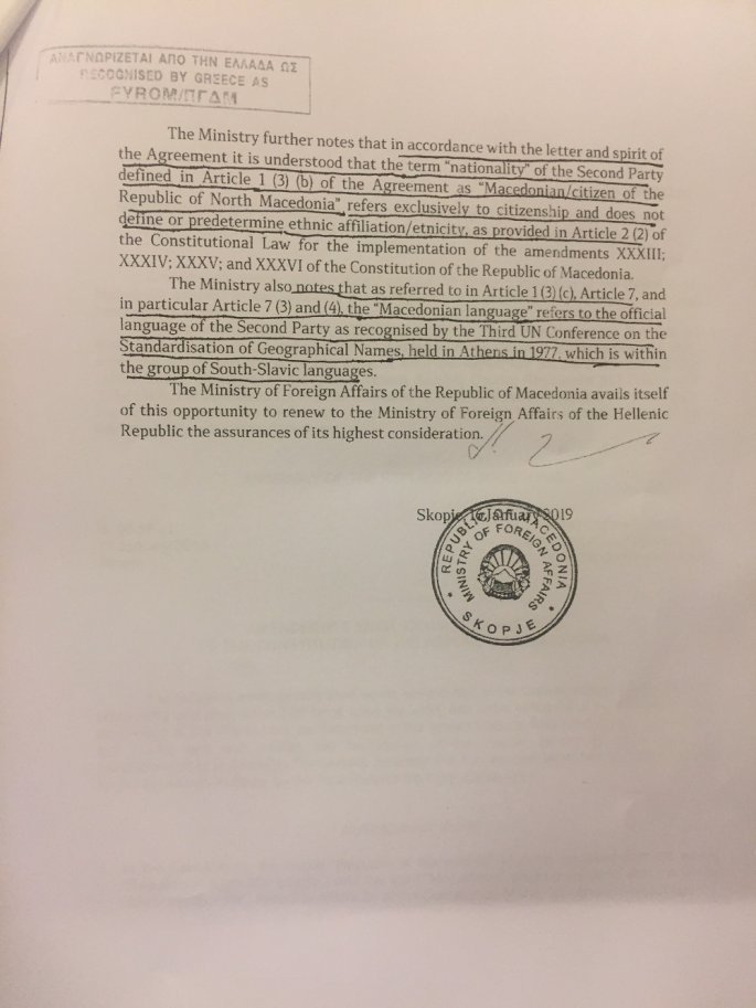 Στη διακοίνωση μεταξύ άλλων αναφέρεται ότι η Σκοπιανή πλευρά εκπλήρωσε τις υποχρεώσεις που είχε αναλάβει, ενώ προσθέτει πως ολοκληρώθηκαν οι απαιτούμενες Συνταγματικές αλλαγές στις 11 Ιανουαρίου.