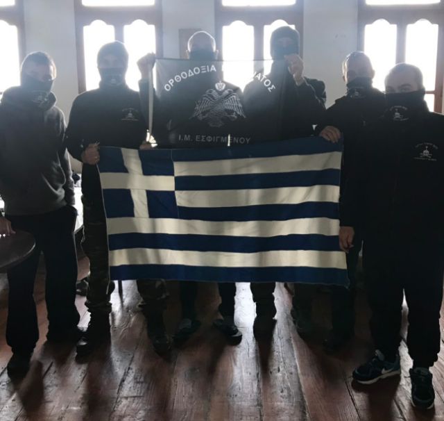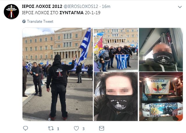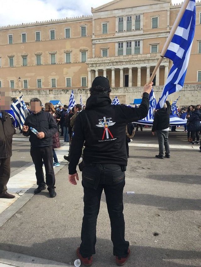 Στο συλλαλητήριο ενάντια στη Συμφωνία των Πρεσπών την Κυριακή στην πλατεία Συντάγματος, μπροστά στο Μνημείο του Άγνωστου Στρατιώτη, ήταν και μέλη της ακροδεξιάς οργάνωσης «Ιερός Λόχος».