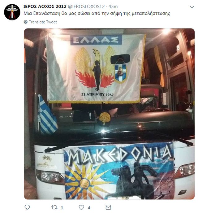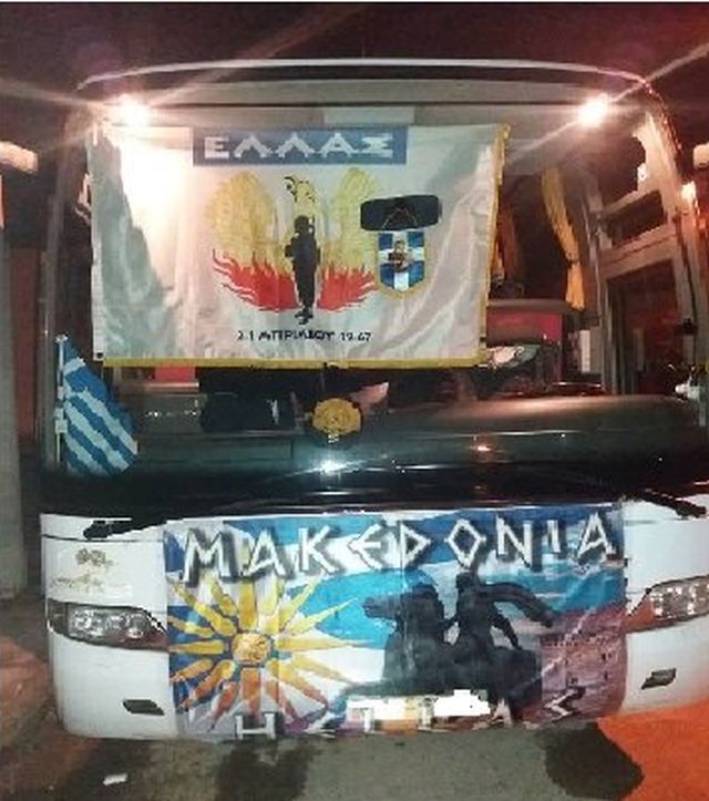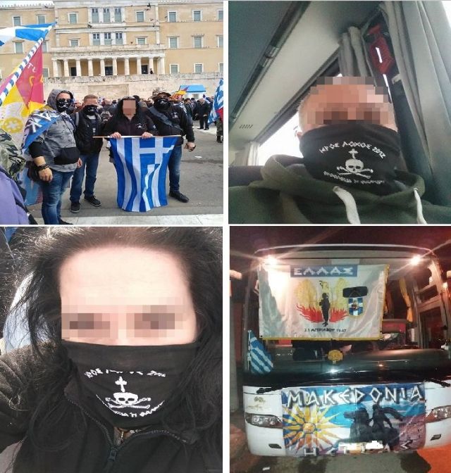 Οι ακροδεξιοί του «Ιερού Λόχου» μετέβησαν στο συλλαλητήριο στο Σύνταγμα με πούλμαν, στο οποίο είχαν αναρτήσει και σημαία της Χούντας.