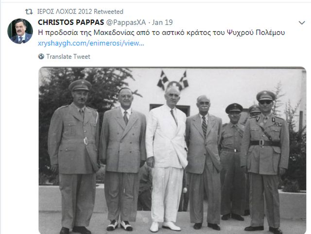Η οργάνωση φαίνεται ότι σχετίζεται με τη Χρυσή Αυγή, διότι κάνει retweet τις «σοφίες» του Χρήστου Παππά: