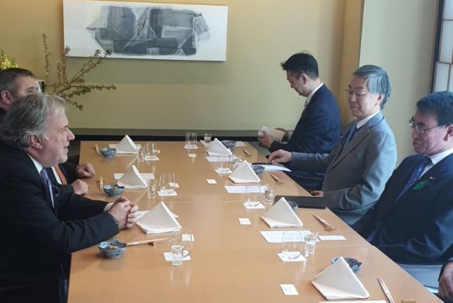 Ο υπουργός Εξωτερικών συναντήθηκε με τον Ιάπωνα ομόλογό του, Τάρο Κόνο.