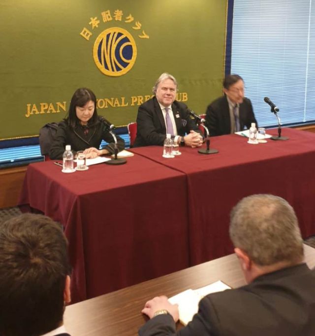O ΥΠΕΞ Γ. Κατρούγκαλος μιλά σε ιαπωνικά μέσα ενημέρωσης στο πλαίσιο της επίσκεψής του στο Τόκιο, την 1η Έλληνα ΥΠΕΞ από το 1996