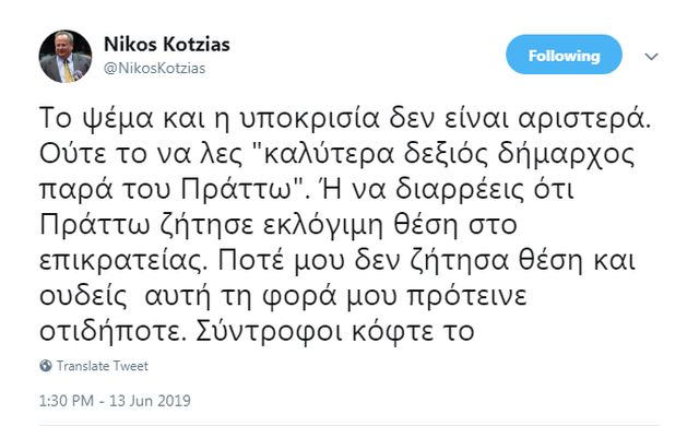 Με ανάρτησή του στο Twitter o Νίκος Κοτζιάς δήλωσε πως ούτε εκείνος ζήτησε θέση στο Επικρατείας αλλά και ούτε του προτάθηκε.