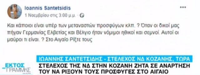 Αντιδράσεις προκάλεσε η ανάρτηση του στελέχους της Νέας Δημοκρατίας στην Κοζάνη Ιωάννη Σαντετσίδη.