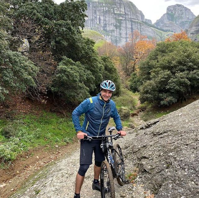 Ο Κυριάκος Μητσοτάκης με αθλητική διάθεση και με όλον τον απαραίτητο εξοπλισμό έκανε, το πρωί του Σαββάτου, mountain bike στα Μετέωρα.