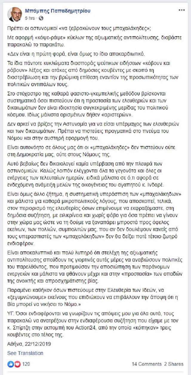 Η γεμάτη fake news ανάρτηση του Μπάμπη Παπαδημητρίου: