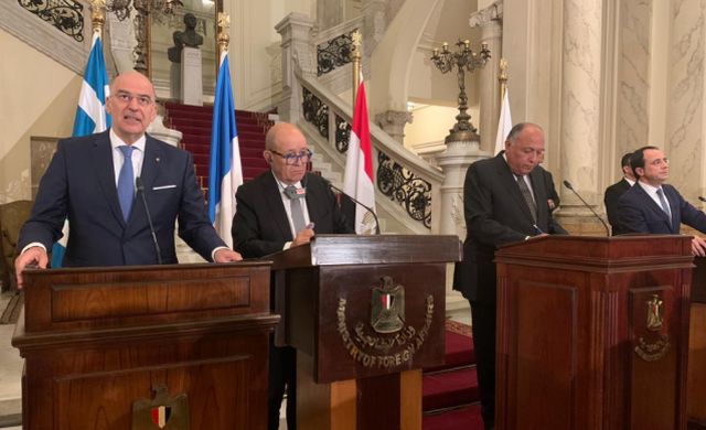 Κοινό ανακοινωθέν υιοθέτησαν Ελλάδα, Κύπρος, Αίγυπτος και Γαλλία στη συνάντηση 3+1 υπουργών Εξωτερικών (Τριμερής Ελλάδας, Κύπρου, Αιγύπτου + Γαλλίας), στην οποία συμμετείχε ως παρατηρητής και η Ιταλία, την Τετάρτη στο Κάιρο.