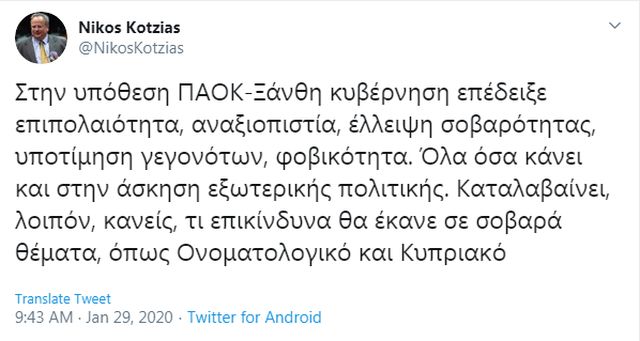 Αναλυτικά η ανάρτηση του Νίκου Κοτζιά: