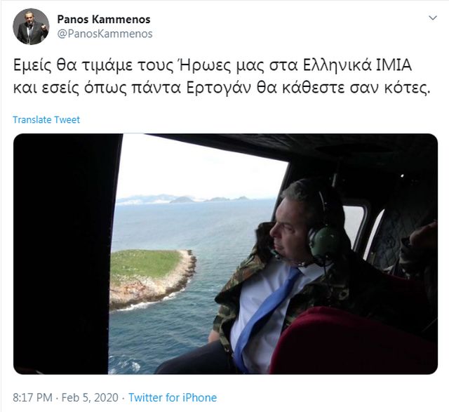 Ο πρώην υπουργός Άμυνας, Πάνος Καμμένος έγραψε στο twitter: