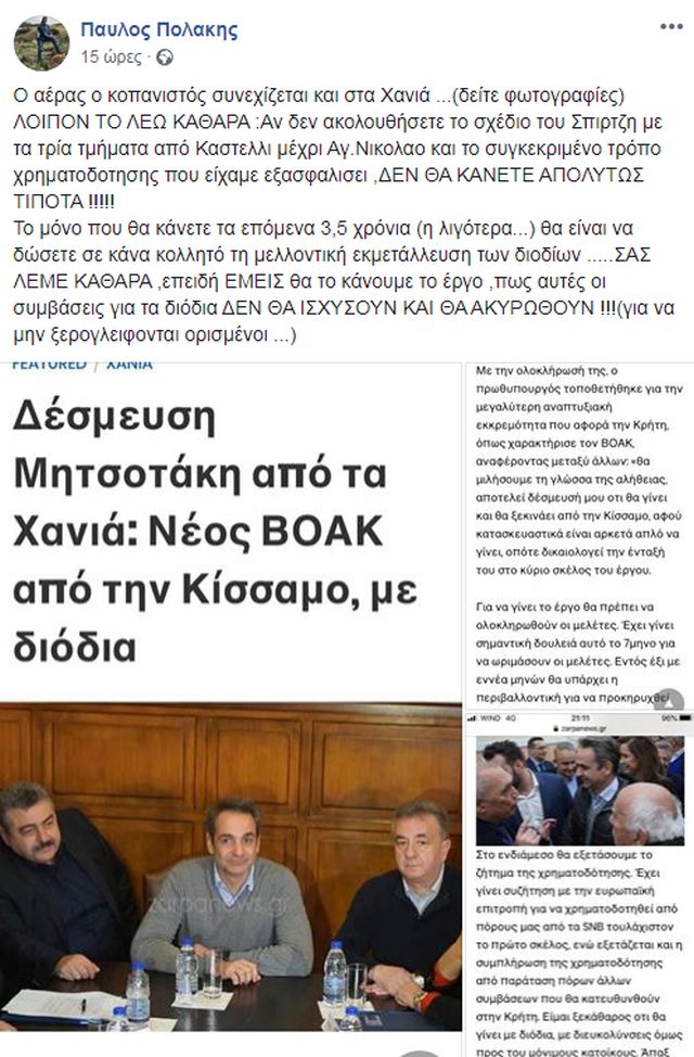 »ΛΟΙΠΟΝ ΤΟ ΛΕΩ ΚΑΘΑΡΑ :Αν δεν ακολουθήσετε το σχέδιο του Σπιρτζη με τα τρία τμήματα από Καστελλι μέχρι Αγ.Νικολαο και το συγκεκριμένο τρόπο χρηματοδοτησης που είχαμε εξασφαλισει ,ΔΕΝ ΘΑ ΚΑΝΕΤΕ ΑΠΟΛΥΤΩΣ ΤΙΠΟΤΑ !!!!!
