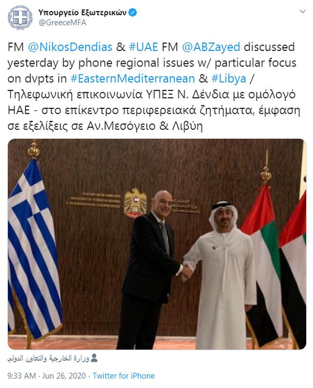 Διαβάστε σχετικά για Αμπντουλάχ Μπιν Ζαγιέντ Αλ Ναχιάν, Ηνωμένα Αραβικά Εμιράτα, Λιβύη, Νίκος Δένδιας, Υπουργείο Εξωτερικών,