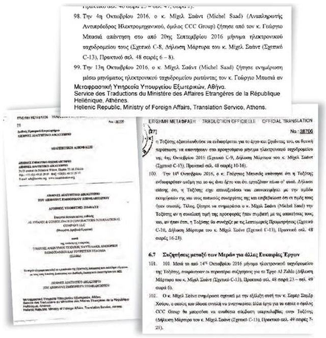 «Τη 13η Οκτωβρίου 2016 ο κ. Μίχελ Σάαντ ζήτησε ενημέρωση μέσω μηνύματος ηλεκτρονικού ταχυδρομείου ρωτώντας τον κ. Γεώργιο Μπασιά αν η “Τοξότης” εξακολουθούσε να ενδιαφέρεται για το έργο και ζητώντας του σε θετική περίπτωση να απαντήσουν στο προηγούμενο μήνυμα ηλεκτρονικού ταχυδρομείου της 4ης Οκτωβρίου 2016» αναφέρει χαρακτηριστικά η απόφαση.