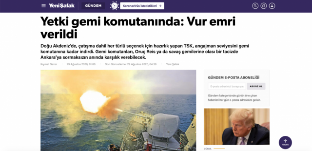 »Οι διοικητές των πλοίων θα μπορούν να ανταποκριθούν αμέσως σε πιθανή απειλή για το “Oruç Reis” χωρίς να ζητήσουν άδεια από την Άγκυρα», αναφέρει το σχετικό δημοσίευμα.