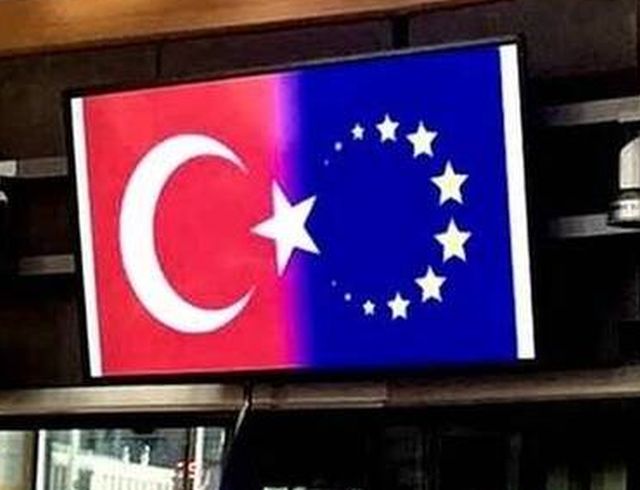 »Επιπλέον, στην παρουσίαση που έκανε ο Τούρκος υπουργός, εκτός από χάρτες που παρουσίασε χωρίς αντίλογο, προέβαλε και το logo της Διεύθυνσης Ευρωπαϊκών Υποθέσεων του Υπουργείου Εξωτερικών της Τουρκίας, που παρουσιάζει τροποποιημένα τα αστέρια της σημαίας της ΕΕ στα πρότυπα της Τουρκικής ημισέληνου.