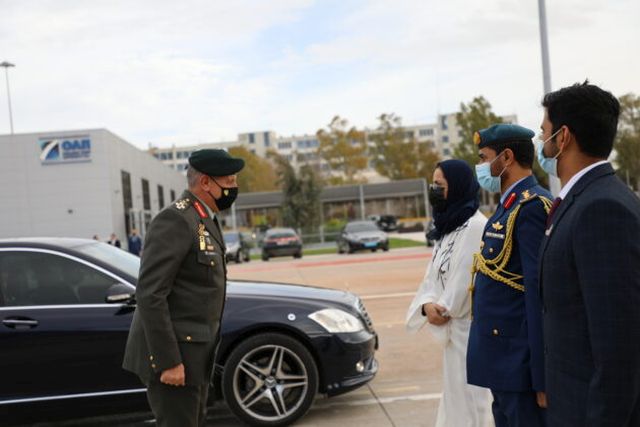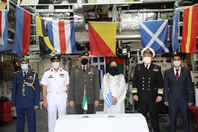 Τον Αρχηγό ΓΕΕΘΑ υποδέχτηκαν η Επιτετραμμένη της πρεσβείας των ΗΑΕ κα Eiman Alzeyoidi, ο Βοηθός του Ακόλουθου Άμυνας των Η.Α.Ε. Συνταγματάρχης Waleed Alharmi και ο Κυβερνήτης του πλοίου Αντιπλοίαρχος Khamis Almazrouei.
