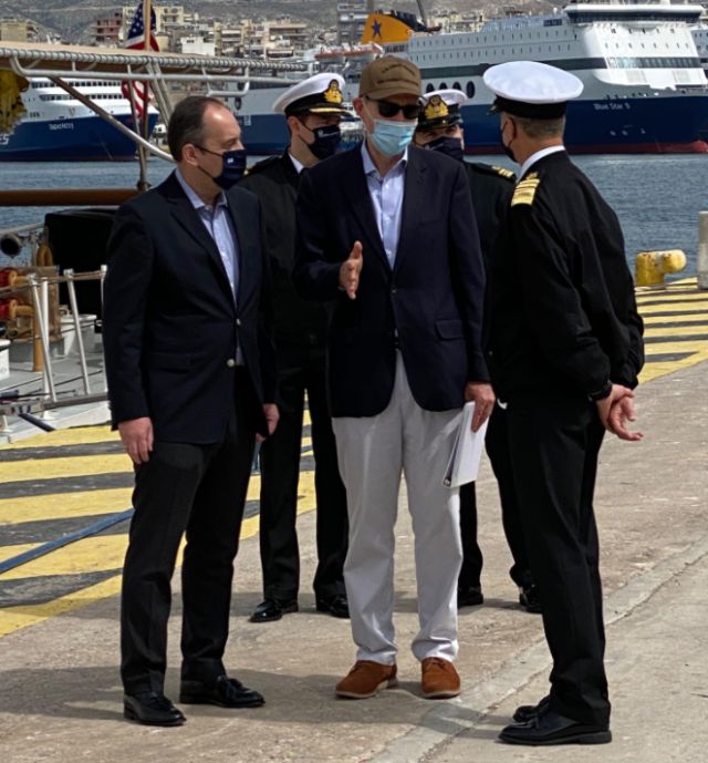 Δύο σκάφη της αμερικανικής Ακτοφυλακής, τύπου USCG Cutters, που έχουν καταπλεύσει στο λιμάνι του Πειραιά, επισκέφθηκε το πρωί ο υπουργός Ναυτιλίας και Νησιωτικής Πολιτικής, Γιάννης Πλακιωτάκης, μαζί με τον πρεσβευτή των Ηνωμένων Πολιτειών της Αμερικής στην Αθήνα, Τζέφρι Πάιατ και τον αρχηγό του Λιμενικού Σώματος, αντιναύαρχο Θεόδωρο Κλιάρη.