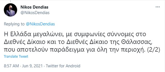 «Η Ελλάδα μεγαλώνει, με συμφωνίες σύννομες στο Διεθνές Δίκαιο και το Διεθνές Δίκαιο της Θάλασσας, που αποτελούν παράδειγμα για όλη την περιοχή».