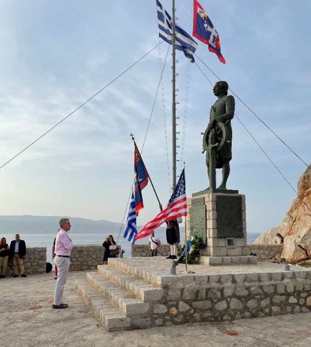 Κατά τη διάρκεια τελετής, o δήμαρχος Δρ. Γ. Κουκουδάκης, η πρόεδρος του Δημοτικού Συμβουλίου κυρία Α. Μαυρομάτη και ο Αμερικανός πρέσβης στην Ελλάδα κ. Τζέφρι Πάιατ, εγκαινίασαν πινακίδα δρόμου του νησιού, που θα φέρει πλέον το όνομα των δύο Αμερικανών Φιλελλήνων αγωνιστών πεσόντων στην Ελλάδα κατά τη διάρκεια του απελευθερωτικού αγώνα των Ελλήνων.