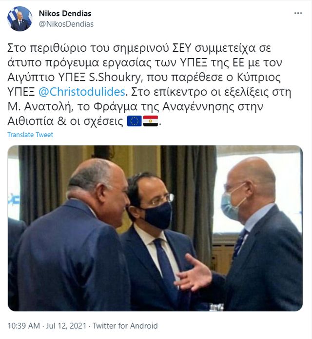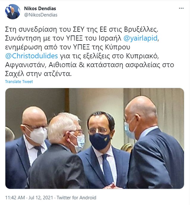 »Και επίσης ο υπουργός Εξωτερικών της Κύπρου, ο Νίκος Χριστοδουλίδης, θα ενημερώσει για το επίπεδο των τουρκικών προκλήσεων και τι συμβαίνει γενικά ως προς το Κυπριακό.