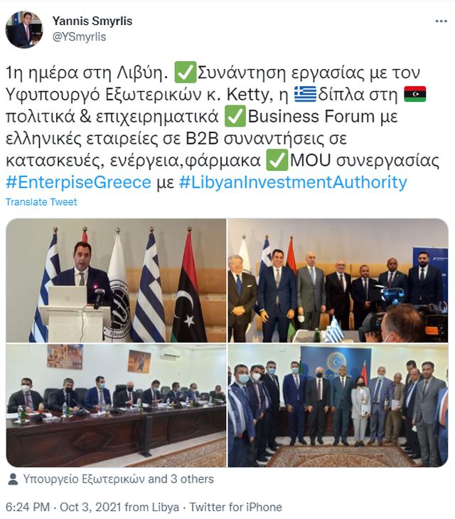 Στην Τρίπολη της Λιβύης βρίσκεται από την Κυριακή και θα συνεχίσει το έργο της και τη Δευτέρα ελληνική επιχειρηματική αποστολή που διοργάνωσε το ελληνικό υπουργείο Εξωτερικών με το Enterprise Greece.
