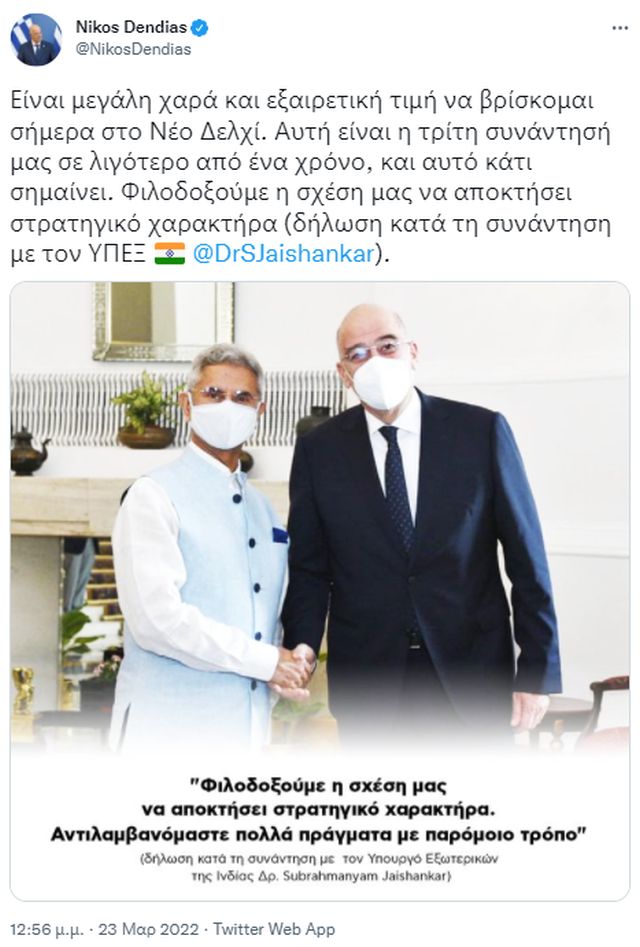 — Nikos Dendias (@NikosDendias) March 23, 2022