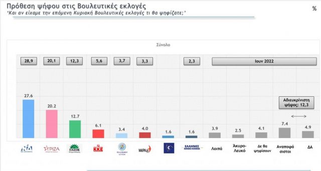 Η αδιευκρίνιστη ψήφος φτάνει το 12,3%.