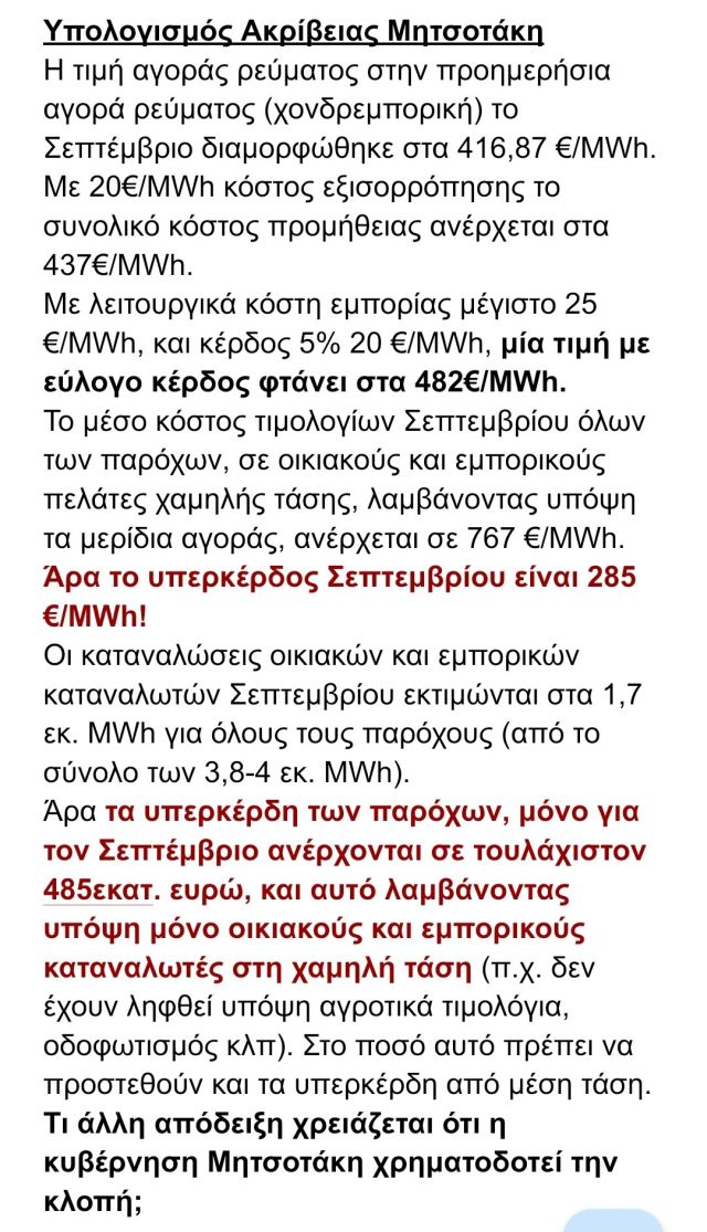 Υπερκέρδη Σεπτεμβρίου, μόνο από οικιακούς και εμπορικούς πελάτες χαμηλής τάσης: 485 εκατομ. €#Αριστεία! pic.twitter.com/16mzlhN0zN— Sokratis Famellos (@SFamellos) October 7, 2022