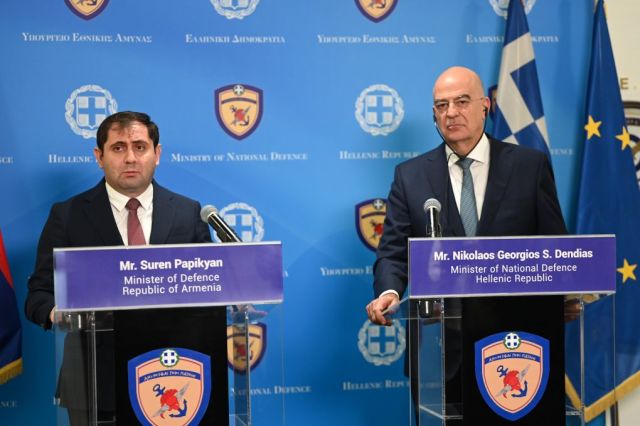 Ο υπουργός Εθνικής Άμυνας, Νίκος Δένδιας, συναντήθηκε την Πέμπτη 14 Δεκεμβρίου 2023, με τον υπουργό Άμυνας της Αρμενίας Σουρέν Παπικιάν (Suren Papikyan), o οποίος πραγματοποίησε επίσημη επίσκεψη στην Ελλάδα.