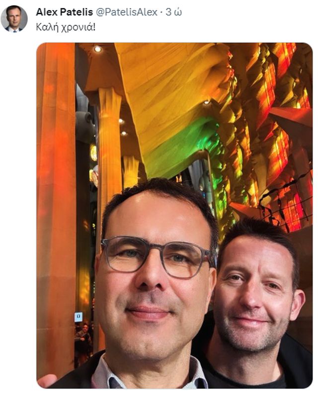 Με μια φωτογραφία με τον σύντροφό του στο πλευρό του, ο επικεφαλής του οικονομικού γραφείου του Πρωθυπουργού, Αλέξης Πατέλης, ευχήθηκε σε όλους «Καλή Χρονιά».