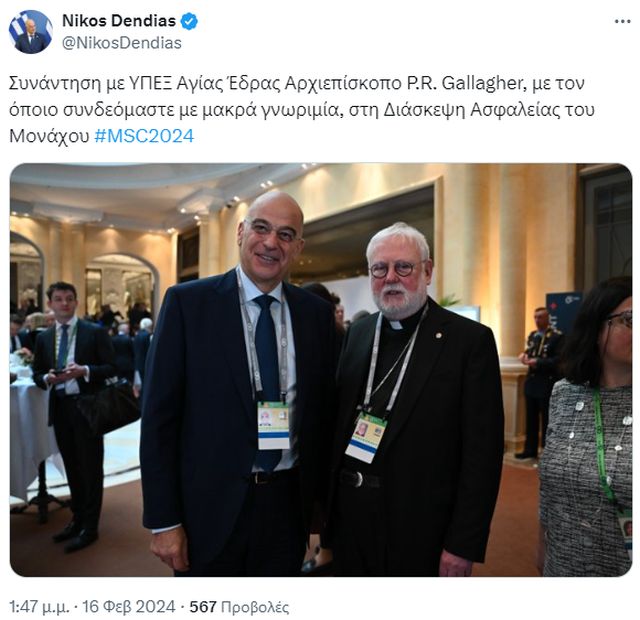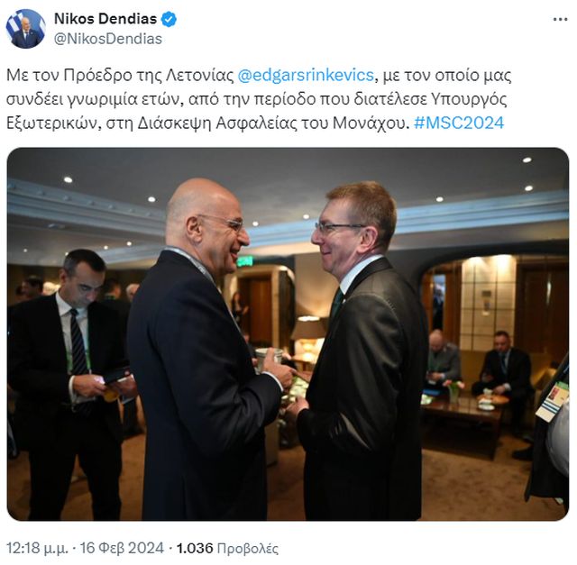 Ο Νίκος Δένδιας συμμετέχει στην 60η Διάσκεψη Ασφαλείας του Μονάχου όπου είχε σειρά επαφών.