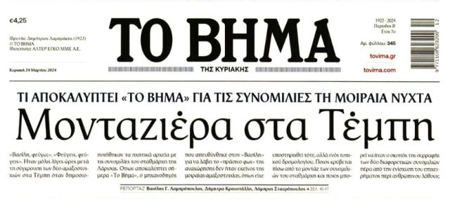 Νερό στον μύλο της αντιπαράθεσης έριξε δημοσίευμα του «Βήματος» της Κυριακής, με τίτλο «Μονταζιέρα στα Τέμπη», το οποίο υποστηρίζει πως «ο μηχανοδηγός που απευθύνθηκε στον “Βασίλη” για να λάβει το “πράσινο φως” της αναχώρησης δεν ήταν αυτός της μοιραίας αμαξοστοιχίας, όπως είχε υποστηριχθεί τότε, αλλά ενός τοπικού δρομολογίου».