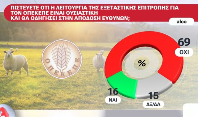 Όσον αφορά το σκάνδαλο του ΟΠΕΚΕΠΕ η κυβέρνηση Μητσοτάκη δέχεται ένα ακόμη σκληρό πλήγμα, καθώς μόλις το 16% των ερωτηθέντων χαρακτηρίζει τη λειτουργία της Εξεταστικής Επιτροπής της Βουλής ουσιαστική και ότι θα αποδώσει ευθύνες έναντι του 69% που διαφωνεί.