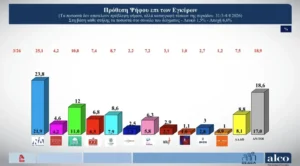 Διαβάστε σχετικά για ALCO, Δημοσκοπήσεις, Ελληνική Λύση, ΚΚΕ | Κομμουνιστικό Κόμμα Ελλάδος, ΜέΡΑ25 | DiEM25 Κίνηση για τη Δημοκρατία στην Ευρώπη 2025, Νέα Αριστερά, Νέα Δημοκρατία, ΝΙΚΗ Δημοκρατικό Πατριωτικό Κίνημα | Δημήτρης Νατσιός, ΠΑΣΟΚ, Πλεύση Ελευθερίας, ΣΥΡΙΖΑ, Φωνή Λογικής,