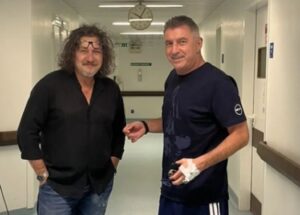 Οι ακόλουθοί του, Καύτης και Kαυτοπάτης, εικονίζονται δεξιά και αριστερά ντυμένοι με παρόμοιο τρόπο.