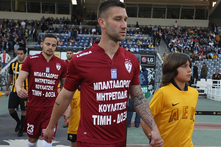 Αξίζει να σημειωθεί οι παίκτες της Λάρισας μπήκαν στον αγωνιστικό χώρο με φανέλες στις οποίες αναγράφονται τα ονόματα του νεκρού πιλότου από την πτώση του Mirage, Γιώργου Μπαλταδώρου αλλά και των δύο φυλακισμένων στρατιωτικών στην Τουρκία, Δημήτρη Κουκλατζή και Άγγελου Μητρετώδη. Τα ονόματα συνοδεύονται από τις λέξεις «Τιμή – Δόξα».