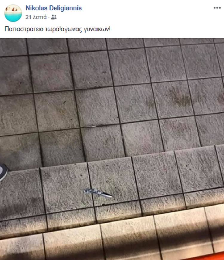 Δείτε τη χαρακτηριστική ανάρτηση του Νίκου Δεληγιάννη στην οποία φαίνεται ξεκάθαρα ένα μαχαίρι πεσμένο στο έδαφος: