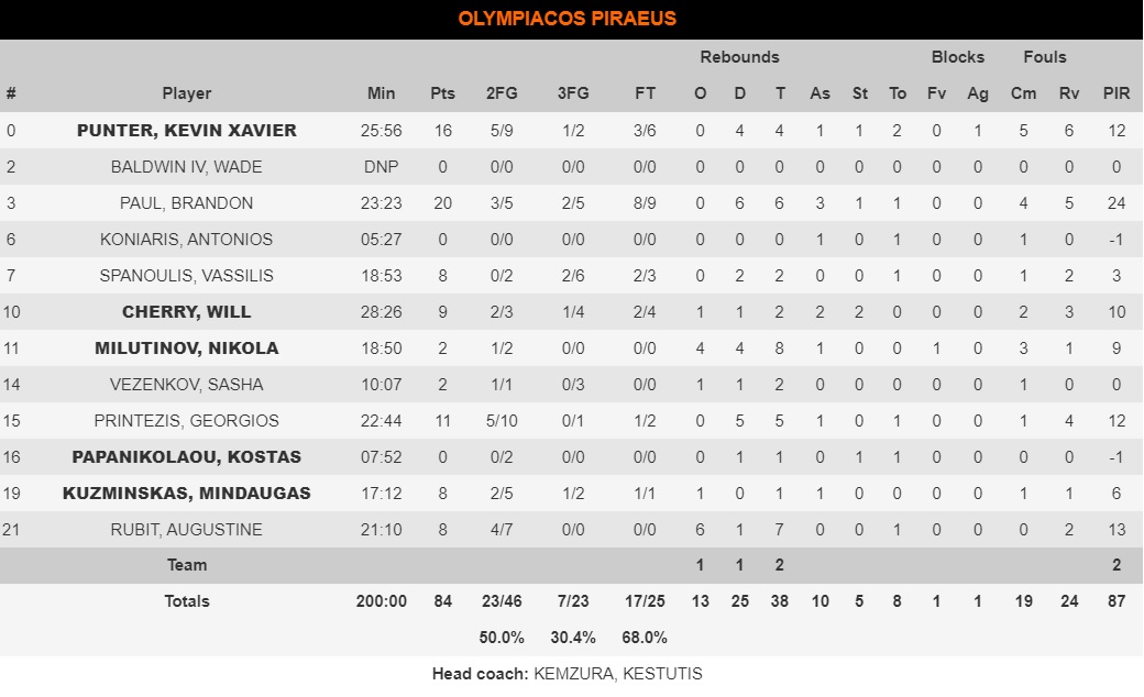 Ο Ολυμπιακός έπαιξε ομαδικά, μάζεψε τα ριμπάουντ (8 ο Μιλουτίνοβ), έκλεψε μπάλες και πέτυχε μεγάλα σουτ όταν οι παίκτες του Δημήτρη Ιτούδη απειλούσαν για ανατροπή.