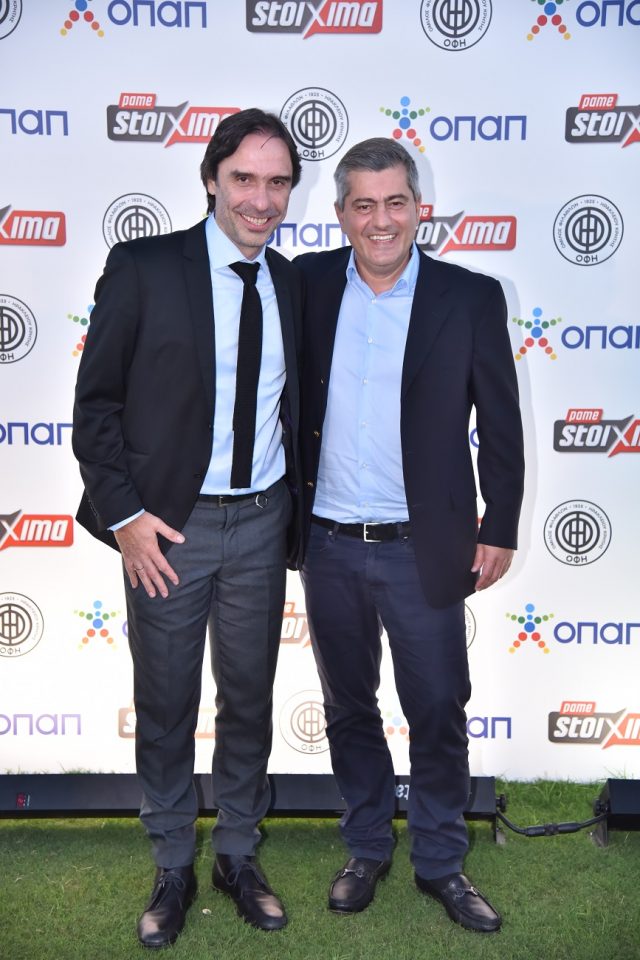 Γιάννης Ρόκκας, Διευθυντής Marketing, Επικοινωνίας και Χορηγιών ΟΠΑΠ, και Πραξιτέλης Βούρος, αρχηγός ΠΑΕ ΟΦΗ 1925.